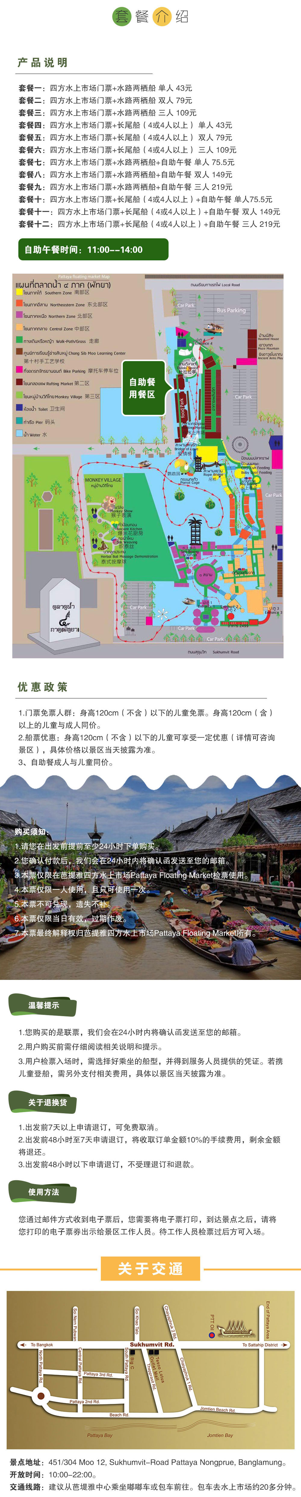 门票+长尾船+水陆两栖船+滑索+猴子表演+手工艺品制作参观+穿泰式传统服装拍照