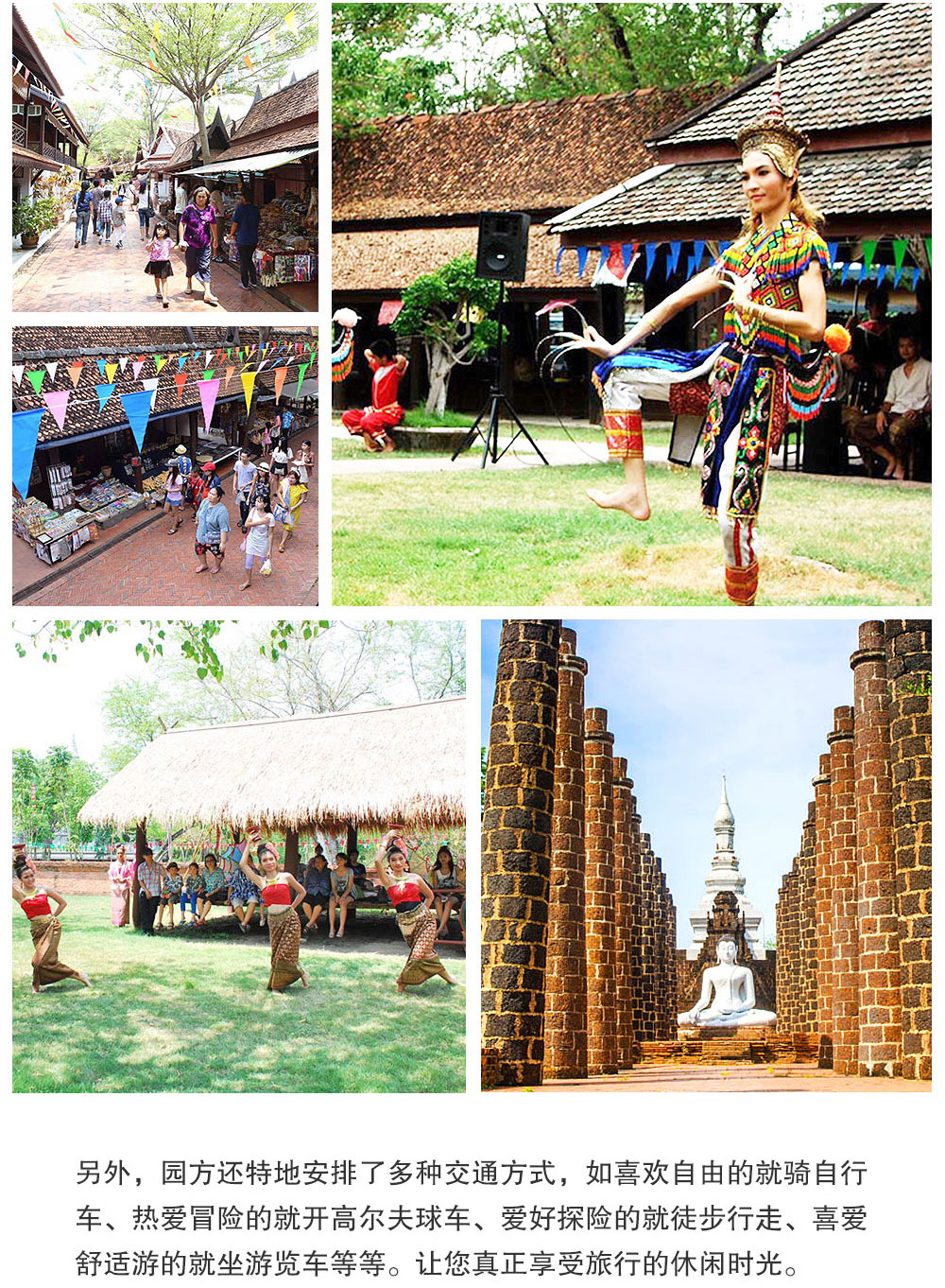 园方还特地安排了多种交通方式,如喜欢自由的就骑自行车、热爱冒险的就开高尔夫球车、爱好探险的就徒步行走、喜爱舒适游的就坐游览车等等。让您真正享受旅行的休闲时光。
