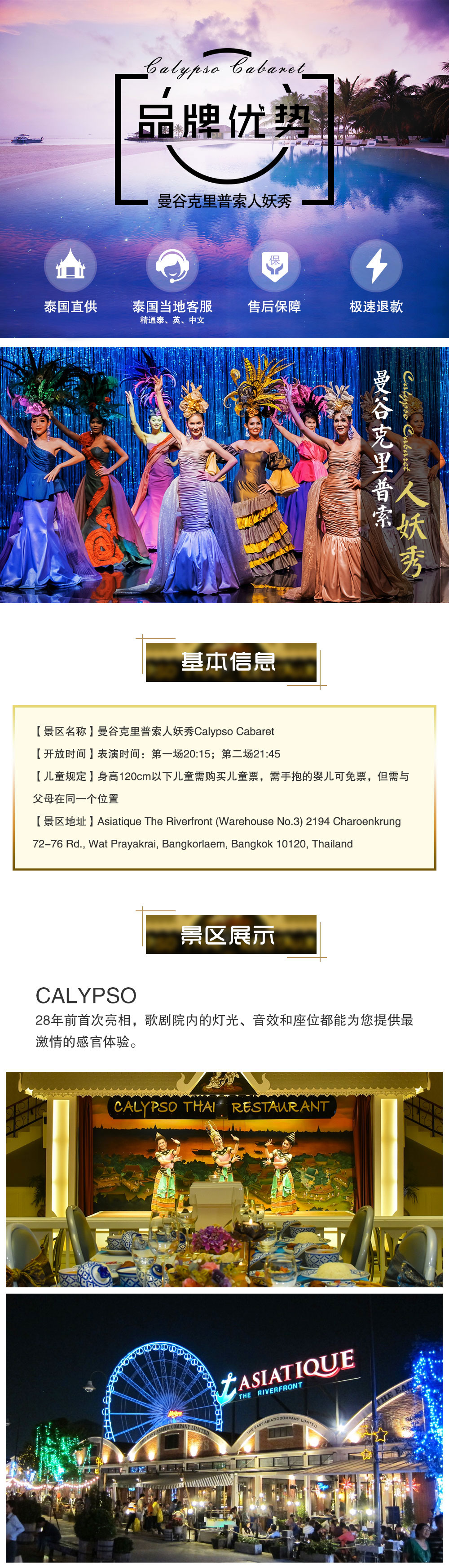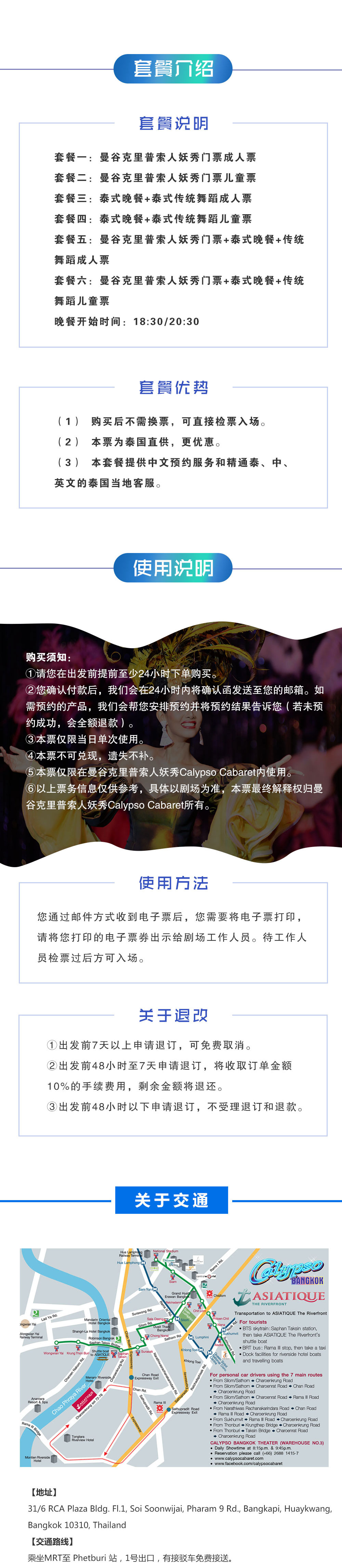曼谷克里普索人妖秀门票+泰式晚餐+泰式传统舞蹈儿童票