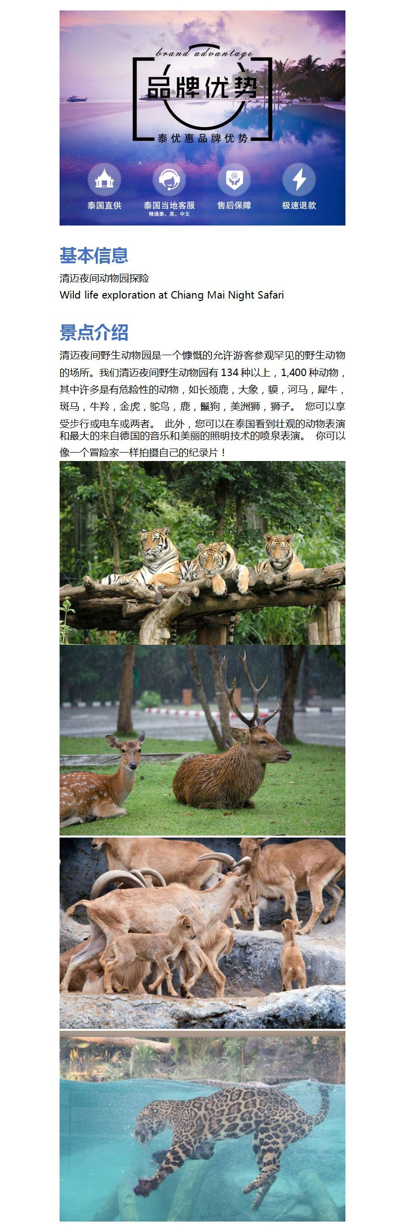 清迈夜间动物园接送+全园门票 晚上场成人票