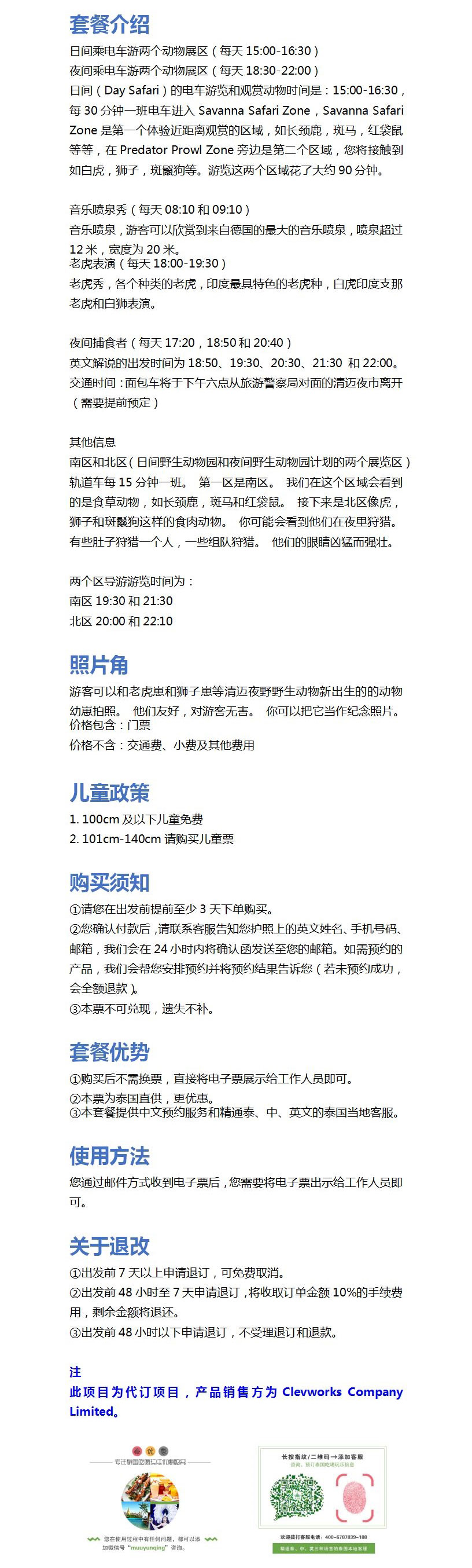清迈夜间动物园接送+全园门票 下午场儿童票