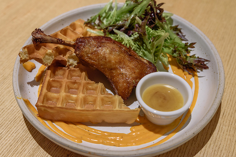 Duck & Waffle 390:鸭腿配汁酱、蜂蜜饼,然后浇上美味的橙色脆皮鸭腿软,色美,清香,肉软,美味妙不可言!